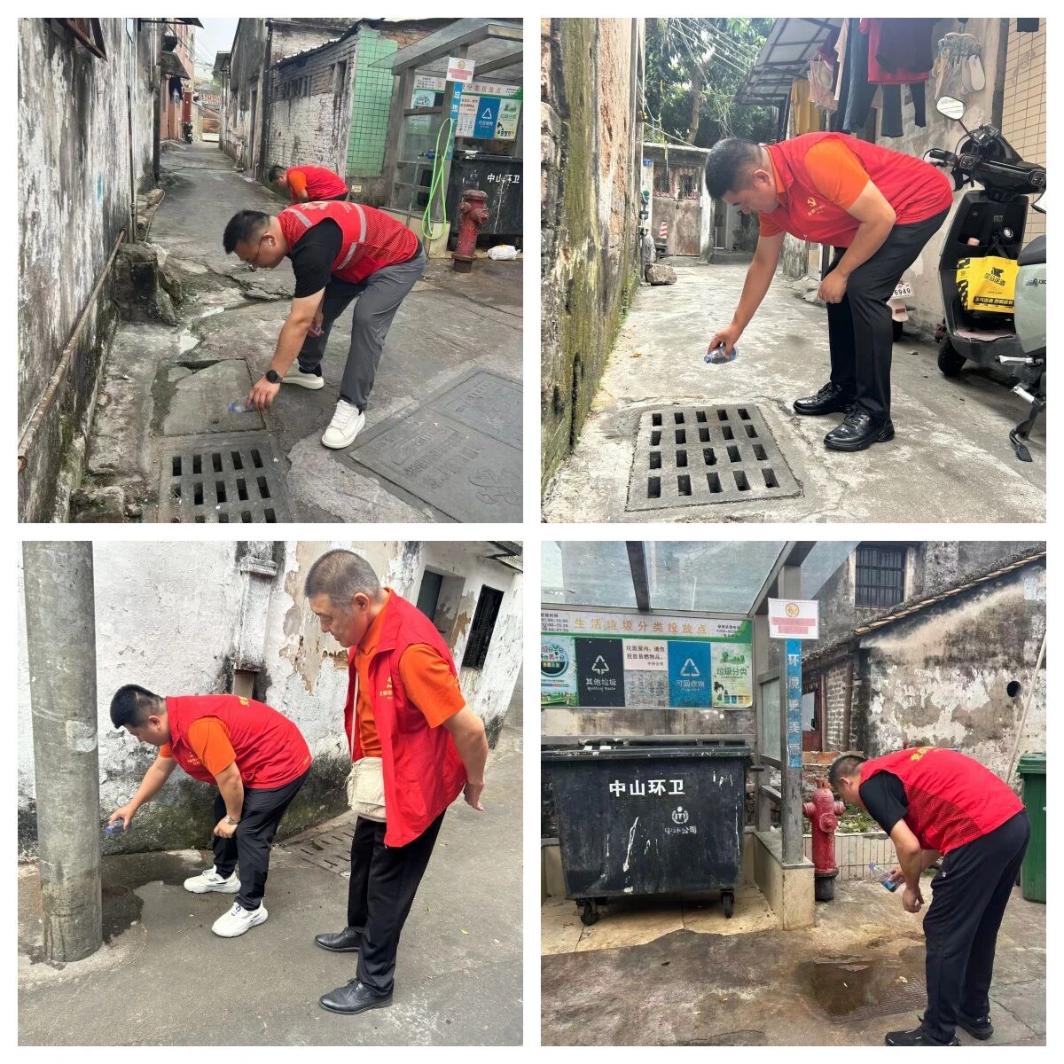 慰问活动结束后,商会企业家们统一身着红马甲,化身“环境守护者”,深入村道、背街小巷、居民楼院及绿化带等重点区域,分工协作、发现寻找各类垃圾、倾倒灭蚊药水和倾倒积水,在推进环境卫生整治的同时,与社区工作人员了解闲置村屋的活化情况,以实际行动践行初心使命,进一步深化“香山红社”项目建设,为构建和谐社区发挥积极作用。