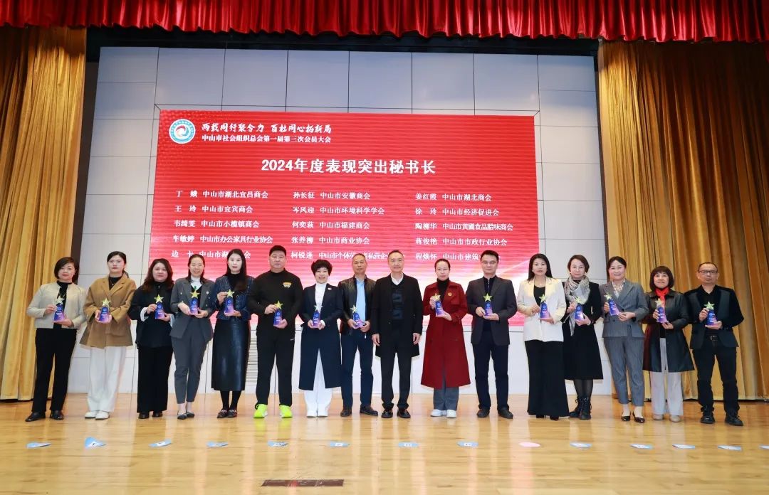 总会会长林伟东为2024年度表现突出的15名秘书长颁奖,他们分别是:中山市湖北宜昌商会丁娥、中山市宜宾商会王玲、中山市小榄镇商会韦绮雯、中山市办公家具行业协会车敏婷、中山市湖南商会边卡、中山市安徽商会孙长征、中山市环境科学学会岑凤迎、中山市福建商会何奕萩、中山市商业协会张养柳、中山市个体劳动者私营企业总会柯锐逢、中山市湖北商会姜红霞、中山市经济促进会徐玲、中山市黄圃食品腊味商会陶柳华、中山市市政行业协会蒋俊艳、中山市建筑业协会程焕怀。