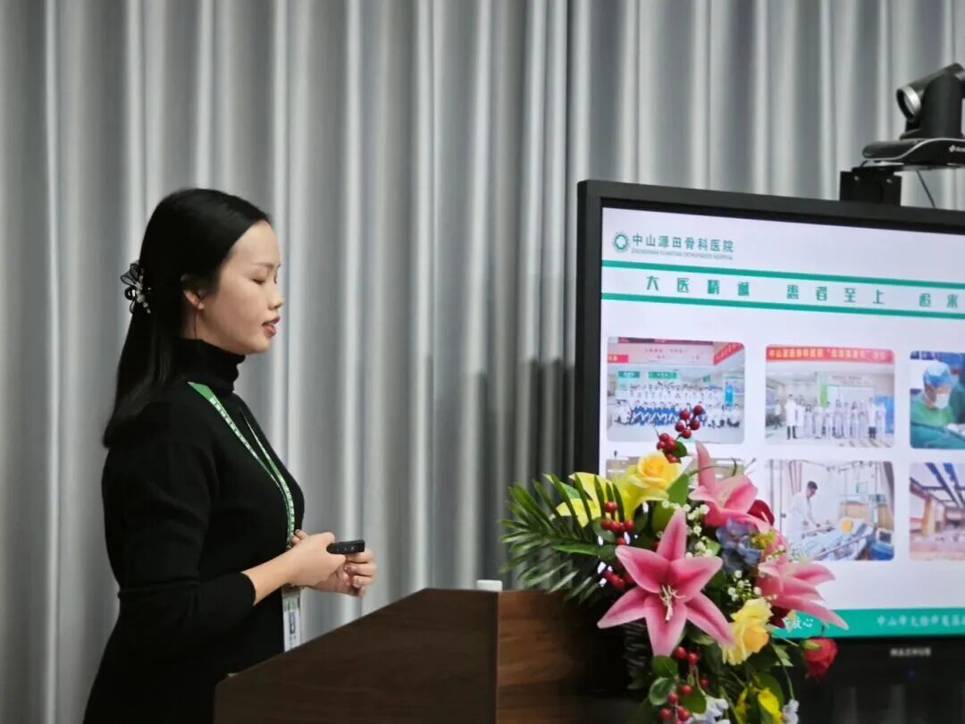中山源田骨科医院院办公室兼品牌运营部主任张方盈详细介绍医院发展情况。她表示,医院始终将合规经营作为发展根基,坚持“依法执业,规范经营”的原则,同时秉承“患者满意、员工幸福、同行认可、政府放心”的办院宗旨,以“大医精诚、患者至上、追求疗效、品质服务”的核心价值观为引领,凝心聚力推动医院高质量发展。结合医院的技术特色、专科优势及先进设备配置,全方位展现了医院的核心竞争力。