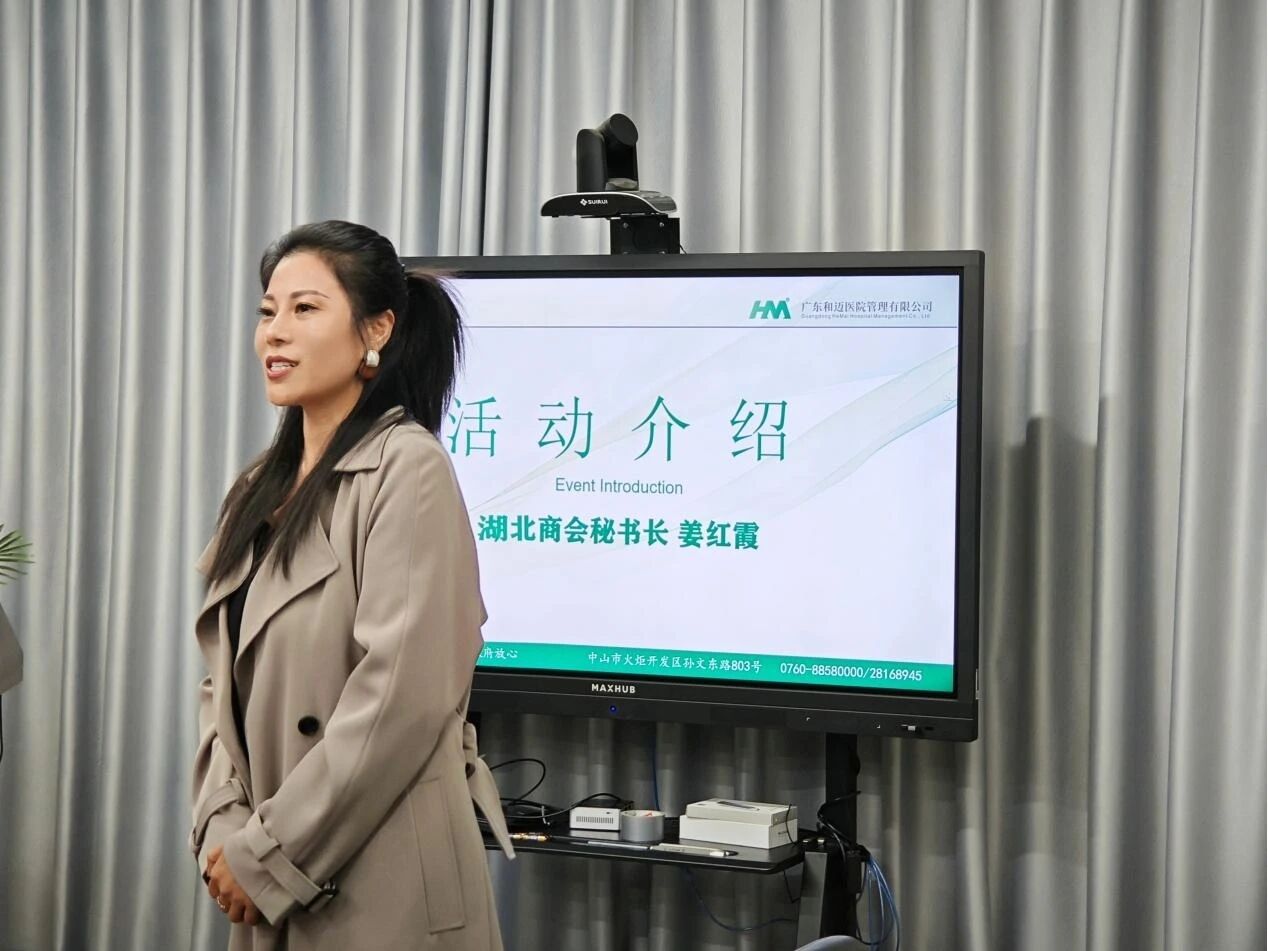 活动由医院办公室兼品牌运营部主任张方盈主持,她首先向到场嘉宾致以诚挚问候,希望通过本次交流,打破医院医院与各商协会会员企业间的信息壁垒,助力企业建立更完善的健康保障体系,让优质健康资源走进企业、为企业家及员工的健康保驾护航。随后,中山市湖北商会秘书长姜红霞逐一介绍参会人员,点明活动主题,并预祝本次交流活动在健康服务与企业发展的融合之路上收获满满。