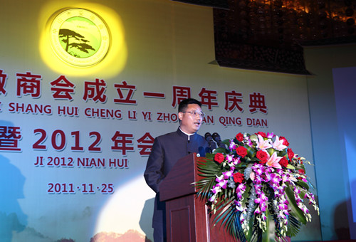 中山市委常委、中山军分区政委赵秀书和安徽省原人大常委会副主任吴昌期分别上台发表了重要讲话。赵政委对商会成立一周年表示了祝贺,对商会一年工作所取得的辉煌成果给予了肯定与赞赏,并代表市委市政府表示对商会的未来的工作一如既往地给予支持,期望商会加强与各职能部门与社会团体的互动与联系,为中山经济建设、社会发展、和谐中山作出更大的贡献。吴主任回忆了首届国际徽商经营商会成立时的情况和期望目标,表示基本实现徽商组织遍天下的目标,期望徽商组织为实现徽商天下而努力,重振历史徽商的辉煌,也希望粤商徽商携手共创辉煌。
