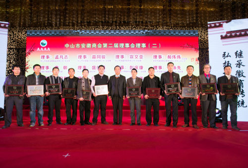 12月20日,中山市安徽商会第二届理事会就职典礼暨三周年誌庆晚宴在中山市南区永安新城皇冠假日酒店隆重举行。安徽省委原书记卢荣景、军委空军原副政委中将徐承栋、安徽省人大原副主任吴昌期、安徽省政协原副主席季家宏、安徽省政府驻广州办事处主任朱丹、安徽省政府驻广州办事处副主任孙玉娥、中山市委常委、常务副市长谢中凡、中山市人大副主任吴建新、中山市政协副主席韩泽生、中山市委统战部副部长、市工商联党组书记林春红等重要领导出席,商会顾问单位领导,中山市青企协、各镇区商会、异地商会等66家商会的会长和秘书长;中山皖籍乡友代表、商会会员等450多名嘉宾欢聚一堂,宏大的场面、浓浓的乡情、温暖着在场的每一个人。