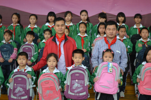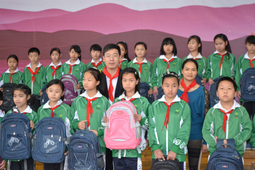 中山市安徽商会“异地务工人员服务中心”主任、商会常务副会长朱明照、商会常务副会长欧元春分别致词。随后,参加活动的领导为多名贫困优秀学子颁发奖学金及向学校100名贫困留守学生赠送了价值1万元的书包、文具等学习用品,让他们感受到了深切的关怀。孩子们为关心他们的爱心人士表演了节目,以此表达他们的感激之情。