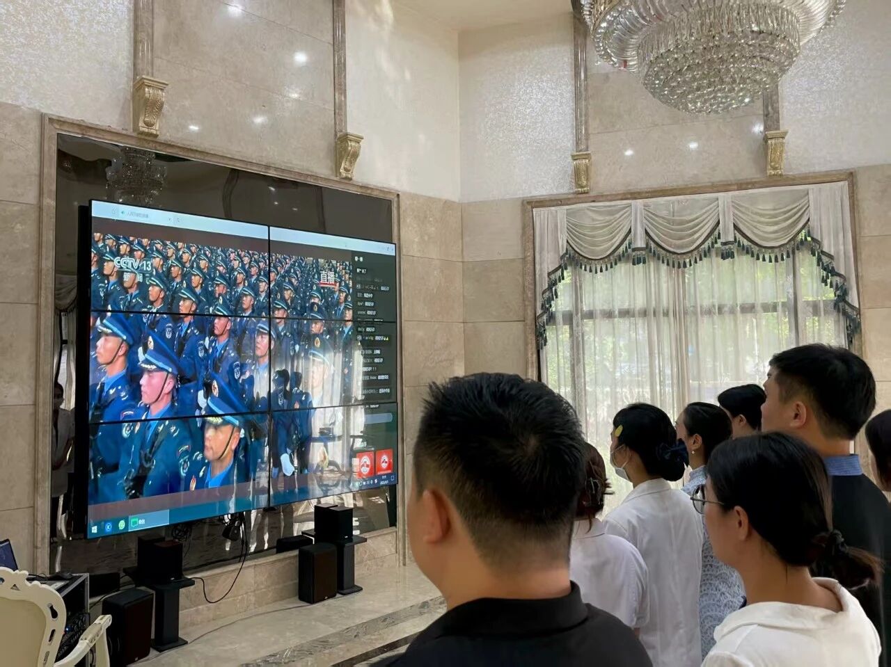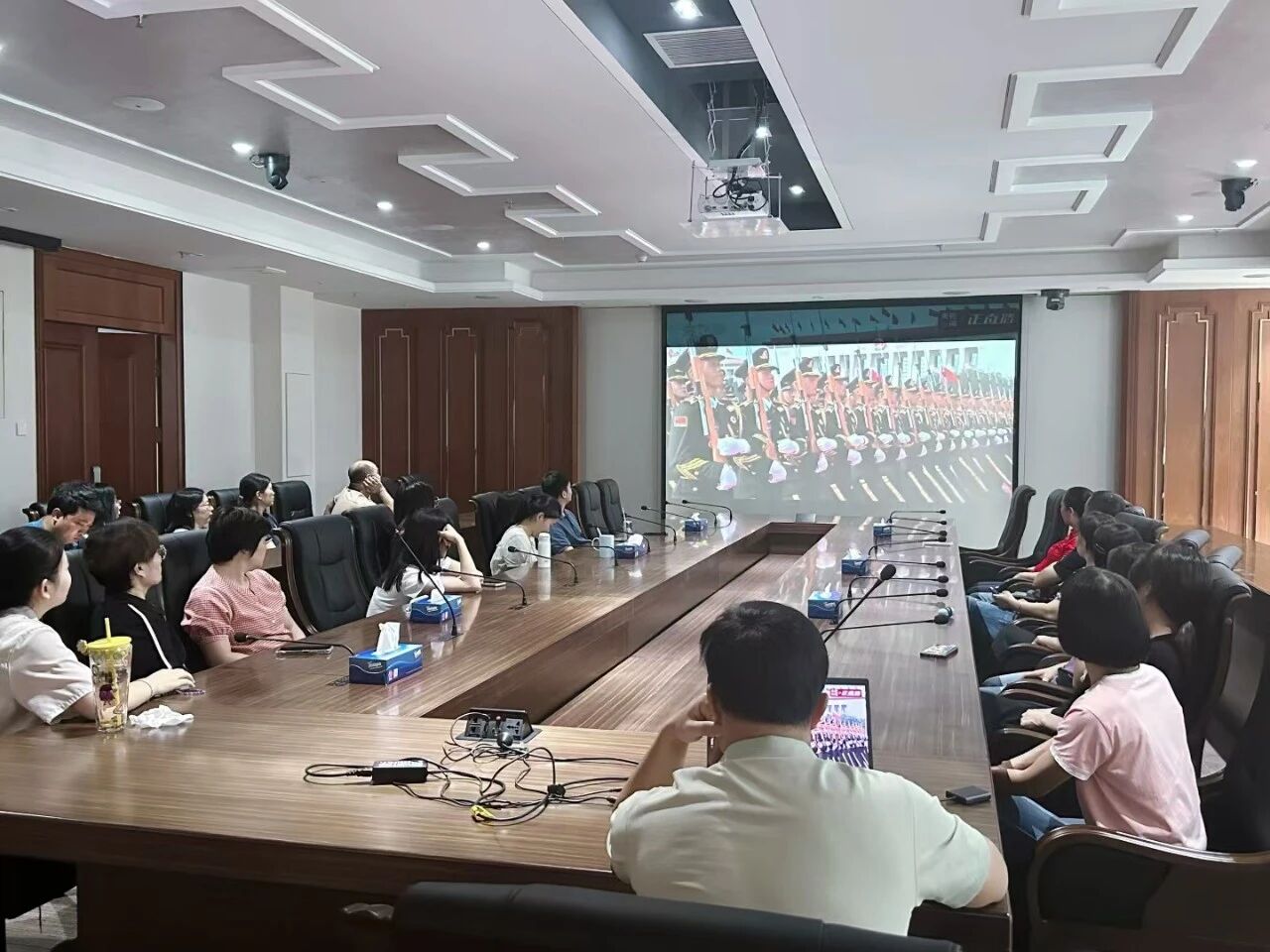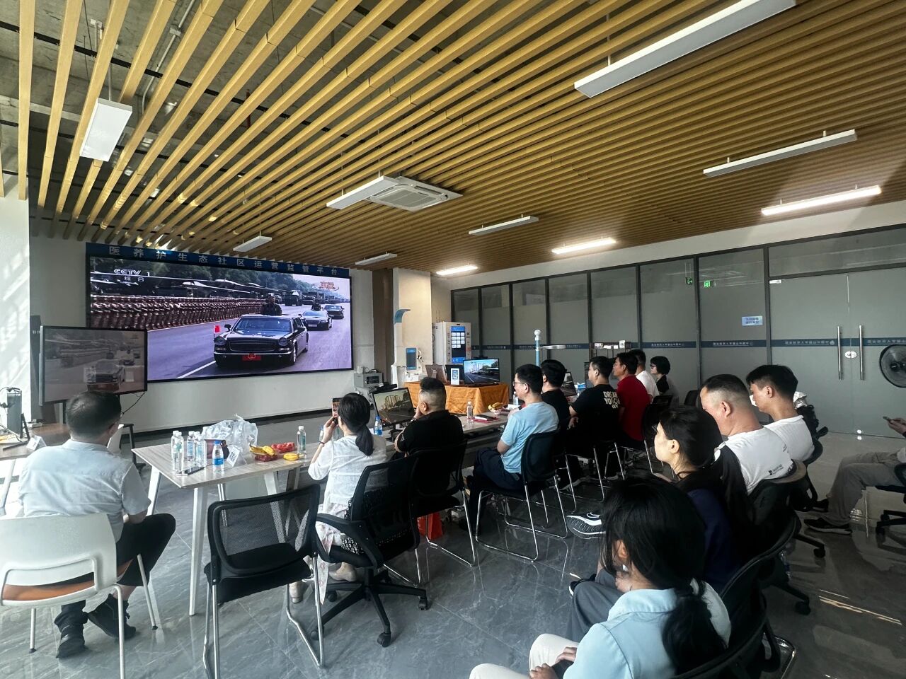 直播过程中,大家全神贯注,认真观看受阅部队整齐划一、威武雄壮的分列式,领略现代化武器装备的磅礴气势,感受受阅官兵英姿飒爽、斗志昂扬的精神风貌。一个个精彩的瞬间,一幅幅震撼的画面,充分展现了在中国共产党坚强领导下,国家日益强大的综合国力、国防和军队现代化建设的辉煌成就,以及全国人民团结一心、奋发向上的时代风采。观看现场不时爆发出热烈的掌声和由衷的赞叹声。