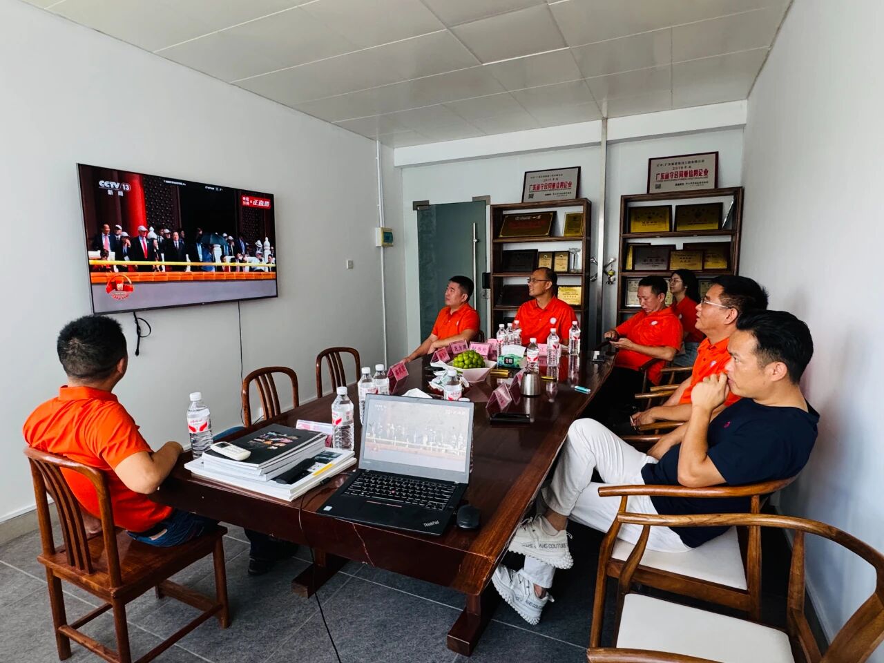会长单位:广东商勤建工集团有限公司集中观看阅兵仪式直播现场