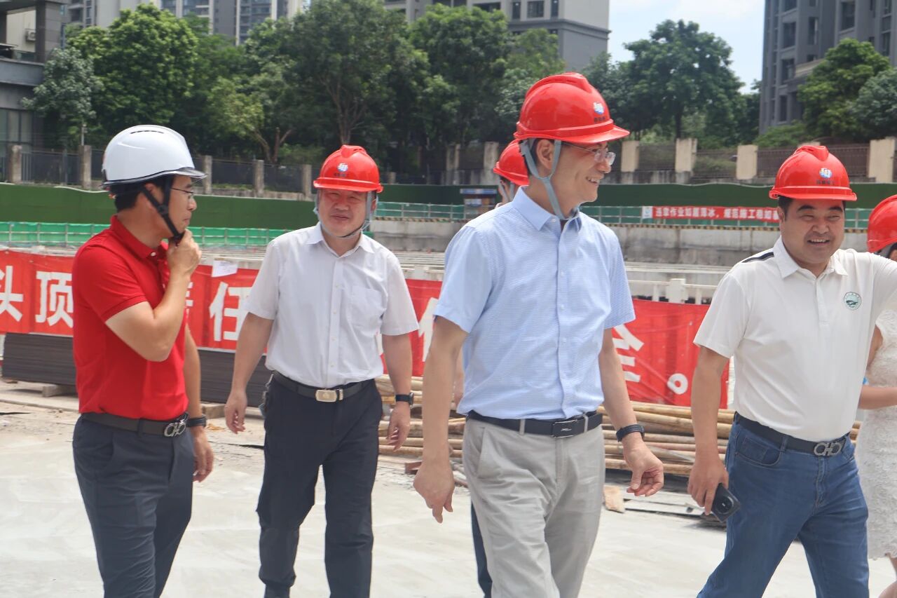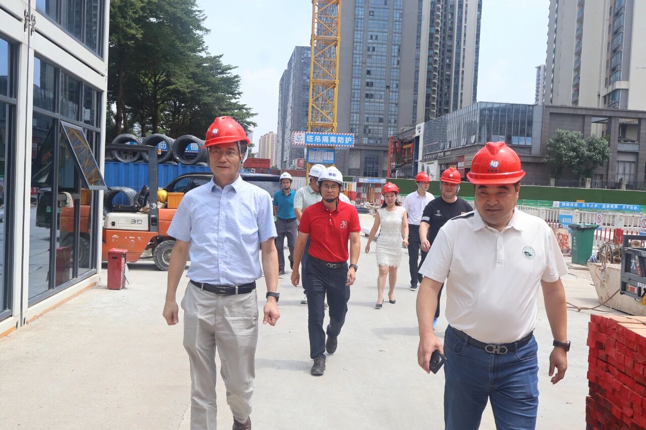 座谈结束后,驻广办周志扬主任一行在商会领导的陪同下,亲赴中山徽商大厦项目建设工地视察指导。在项目现场,周主任仔细查看了施工情况,详细询问了工程进度、施工质量、安全管理和未来规划等关键环节。