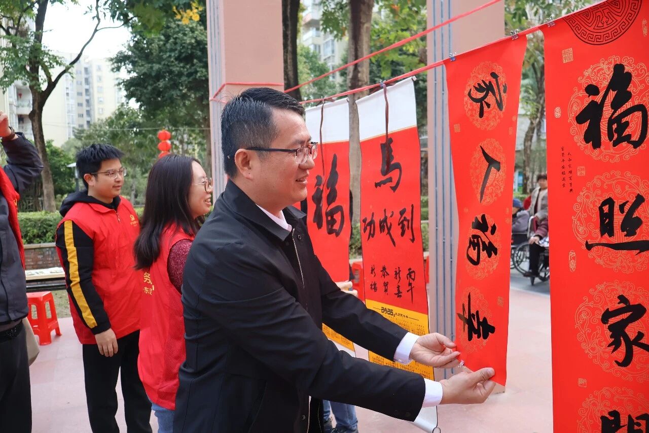 2026年2月3日,在东区街道党工委、办事处的指导下,东裕社区驻点团队带领社区党委、社区妇联联合中山市安徽商会党支部、商会妇联开展"裕"启新章,徽承年味——新春写春联,送温暖主题活动。为社区居民写春联送祝福,并走访慰问辖区老党员、新业态人员、困境妇女儿童、低保户等重点群体,以商社共建的实际行动传递社会温情。熊艳辉理事现场派发自行研发生产的钥匙扣葛咏先,中山市安徽商会监事、中山市书法家协会会员。毕业于中国书法家协会导师工作室行书专业。作品多次在国内各大书法展览中入展与获奖,并为多家艺术品收藏机构收藏。黄旭晖,中山市书法家协会会员、南朗街道书法协会副主席。商村共建聚合力新春慰问显担当 活动现场,两位书法家颇受居民欢迎,一幅幅寓意吉祥的春联和"福"字跃然纸上,为即将到来的春节增添了浓浓年味。居民们有序排队领取春联,脸上洋溢着幸福的笑容。随后,慰问组一行深入社区,为老党员、快递小哥、困境妇女儿童、低保户等重点群体送去米、油等慰问品和新春祝福,与他们亲切交谈,详细了解生活状况和实际困难,让温暖直抵人心。商会党支部书记李进、姚章建会员为快递小哥送去慰问品询问他们的日常工作时长及实际需求,送上暖心慰问品,叮嘱大家户外奔波时注意出行安全。走访老党员期间,慰问组与老同志追忆峥嵘岁月,感谢其为党和国家、社区建设作出的贡献,仔细询问身体与生活状况,倾听诉求,叮嘱老同志保重身体、发挥余热,为社区发展建言献策。郑修林、范方建常务,孙长征常务兼秘书长,张金娟、王小妹理事,赵同海监事,钱进会员在社区党委的指引下,走访慰问困难家庭询问其身体健康、家庭支出及实际困难,倾听心声并鼓励他们树立信心、乐观生活。 此次活动的顺利开展,是"商社共建"模式的生动实践,是香山红社项目理念的具体体现,中山市安徽商会充分发挥商会资源优势,主动融入基层治理,与东裕社区党委建立常态化共建机制,通过组织联建、活动联办、资源联享,推动商会资源与社区需求精准对接,形成了"党建引领、商会参与、社区受益"的共建格局。传递徽商精神彰显社会责任 中山市安徽商会党支部书记李进表示,参与香山红社项目,是商会回馈社会、服务群众的重要途径。未来,商会将继续深化与社区的共建合作,围绕社区需求,常态化开展志愿服务、困难帮扶、文化惠民等活动,为中山基层治理和民生改善贡献商会力量。 东裕社区党委表示将持续坚守为民初心,立足社区实际,常态化开展走访慰问、帮扶救助等活动,聚焦各类群体的急难愁盼问题,不断优化服务举措、提升服务质效,用真心办实事、用真情暖人心,全力构建邻里和睦、温情满满的幸福社区,让温暖之花在东裕社区持续绽放。